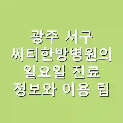 광주 서구 씨티한방병원은 일요일 진료를 통해 많은 환자들에게 편리한 한방 치료 기회를 제공합니다. 효율적인 예약과 적절한 사후 관리로 더욱 효과적인 치료를 받을 수 있습니다. 본 글에서 제공한 팁을 활용하여 최상의 진료 경험을 누리시기 바랍니다.