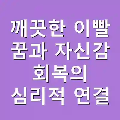 깨끗한 이빨 꿈은 자신감 회복과 자존감을 높이는 중요한 심리적 요소입니다. 이 꿈을 통해 긍정적인 변화를 이끌어내고, 자신의 목표를 명확히 하여 실천하는 것이 중요합니다. 꿈의 메시지를 이해하고 이를 통해 삶의 질을 향상시키는 것이 필요합니다.