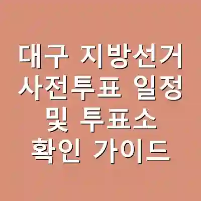 2026년 대구 지방선거를 앞두고 사전투표 일정과 투표소에 대한 정보를 미리 확인하는 것은 매우 중요합니다. 특히, 사전투표와 본투표의 차이점을 이해하고, 정확한 장소와 시간을 알아두는 것이 필요합니다. 이 글에서는 대구 지방선거의 사전투표 일정, 투표소 위치 찾는 방법, 그리고 필요한 점검 사항을 자세히 안내합니다. 이 정보를 통해 헷갈림 없이 원활한 투표를 준비할 수 있습니다.