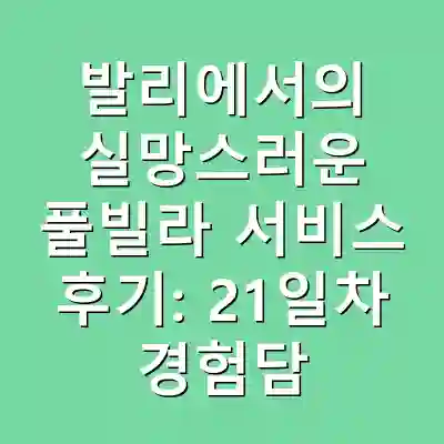 발리는 많은 여행자들에게 꿈의 여행지로 알려져 있으며, 특히 신혼여행지로 인기가 많습니다. 그러나 발리의 풀빌라 리조트에서의 경험이 항상 만족스러운 것은 아닙니다. 이 글에서는 발리의 한 풀빌라에서의 실망스러운 서비스 경험을 공유하며, 어떤 점에서 기대에 미치지 못했는지 자세히 설명하겠습니다. 이 후기를 통해 발리 여행 시 어떤 요소를 고려해야 하는지, 그리고 풀빌라 선택 시 주의해야 할 점들을 배울 수 있습니다.