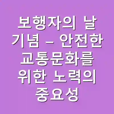 보행자의 날 기념은 안전한 교통문화를 정착시키기 위한 중요한 날로, 보행자와 운전자의 안전을 강조합니다. 교통문화 개선을 위한 다양한 노력과 캠페인 참여가 필요하며, 사회 전반의 인식 변화가 요구됩니다.
