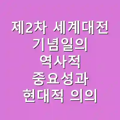 제2차 세계대전 기념일은 전쟁의 참상과 인권 보호의 중요성을 일깨워주는 날입니다. 각국이 기념하는 이 날은 전후 복구와 국제 협력의 중요성을 강조하며, 평화 구축을 위한 교육과 대화의 장으로서 역할을 합니다. 우리는 이 기념일을 통해 과거의 교훈을 기억하고, 미래를 위한 평화를 다짐해야 합니다.