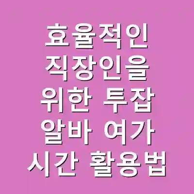 효율적인 직장인을 위한 투잡 알바는 개인의 재정 상황을 개선하는 데 큰 도움이 됩니다. 하지만, 체력과 정신적 스트레스를 관리하는 것이 중요합니다. 제대로 된 계획과 실행을 통해 여러분도 투잡의 혜택을 누릴 수 있습니다.