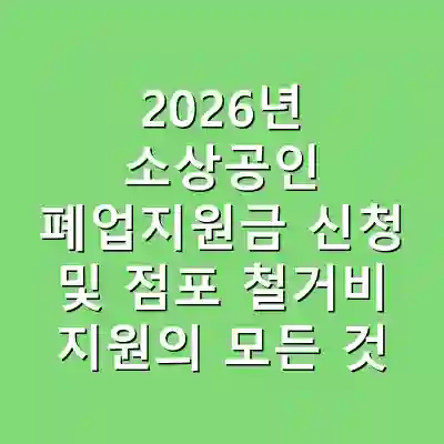 2026년 소상공인 폐업지원금은 폐업 예정 소상공인을 위한 종합 지원 프로그램입니다. 점포 철거비 지원은 최대 600만 원까지 가능하며, 신청 절차는 온라인으로 진행됩니다. 전문가의 조언을 통해 최대한 효과적으로 지원을 받을 수 있습니다.