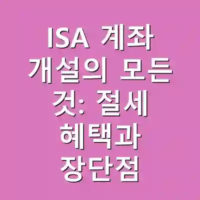 ISA(개인종합자산관리계좌)는 다양한 금융 상품을 하나의 계좌에 통합하여 관리할 수 있는 절세형 계좌입니다. 이 계좌를 통해 투자자들은 세금 부담을 줄일 수 있는 여러 혜택을 누릴 수 있습니다. ISA 계좌는 예금, 주식, 펀드 등 여러 금융상품을 포함하여 수익을 관리할 수 있도록 설계되었습니다. 이 글에서는 ISA 계좌 개설 방법과 이점, 단점, 그리고 절세 혜택을 상세히 알아보겠습니다. 이 글을 통해 ISA 계좌의 장점과 단점을 파악하여 현명한 투자 결정을 내리시길 바랍니다.
